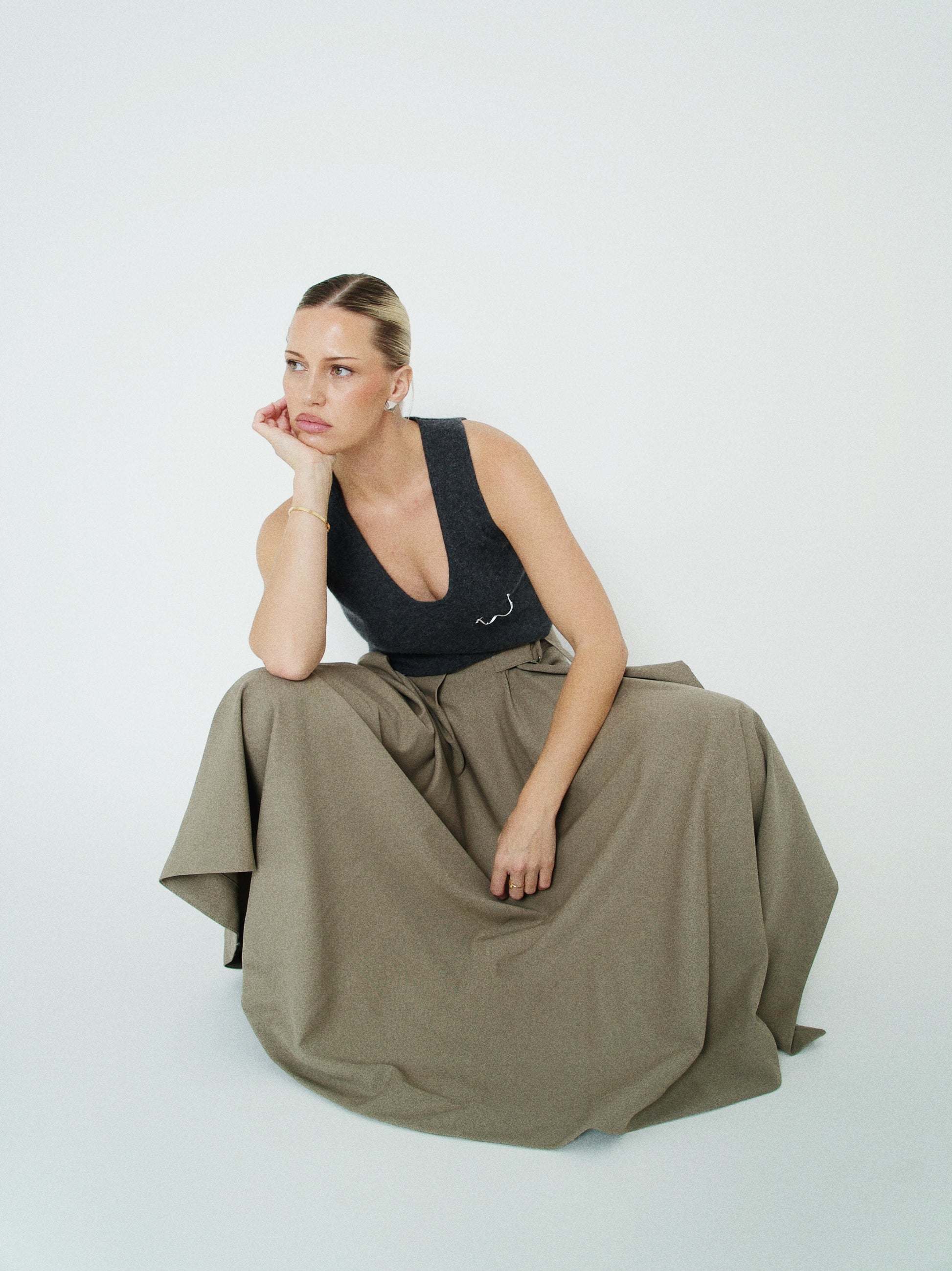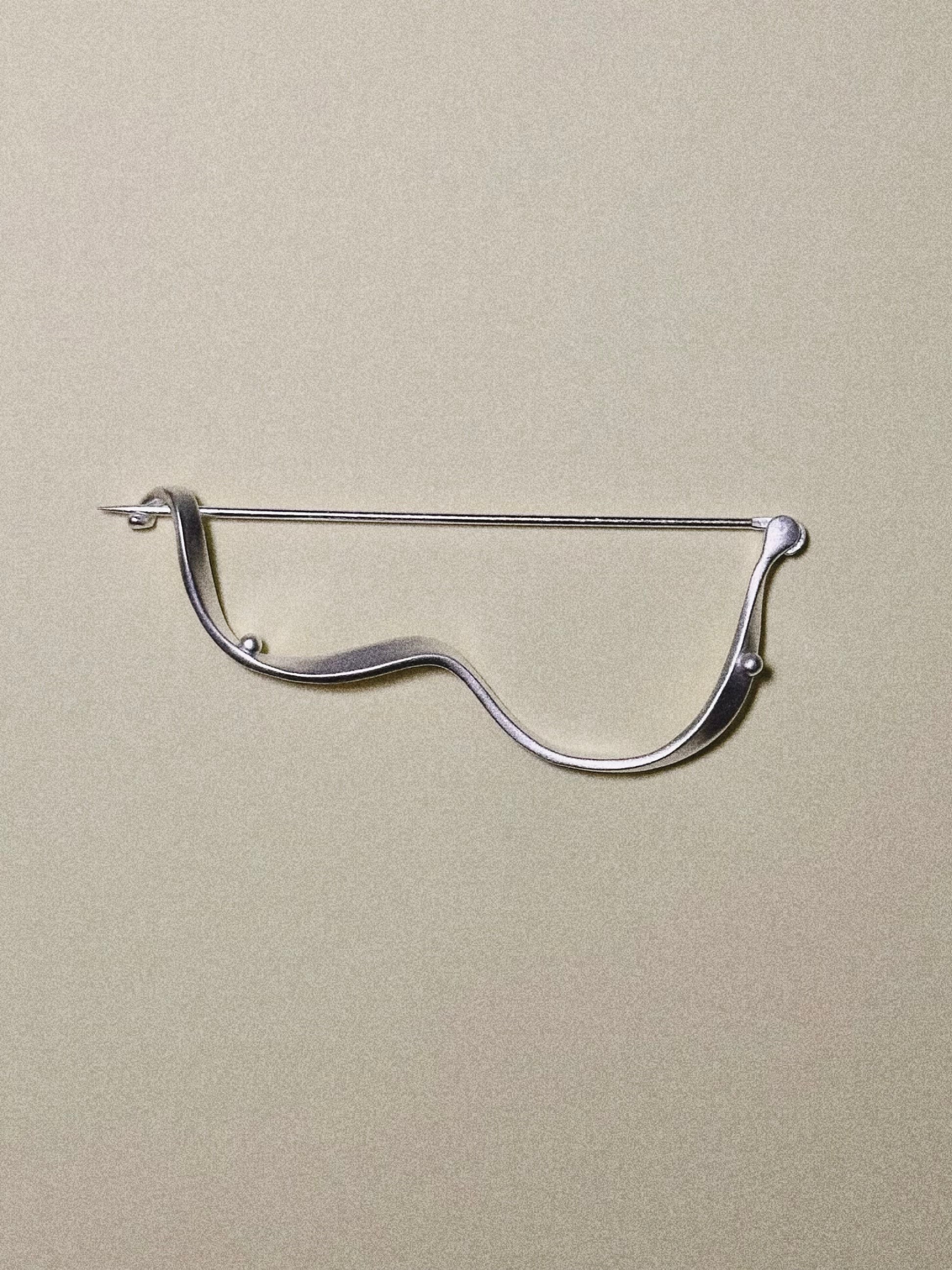 A sculptural brooch inspired by Alexandria Coe’s line drawings, crafted in brass with a rhodium-plated brushed silver finish. A limited-edition piece celebrating softness, strength, and the contours of the female form.