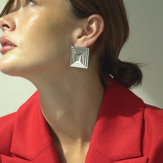 Bold geometry meets timeless elegance in the SIENTA Earrings. Crafted with a rhodium-plated finish, these sculptural rectangular earrings embody modern minimalism with a refined edge. Their clean lines and balanced proportions create a statement piece that transitions effortlessly from day to night.