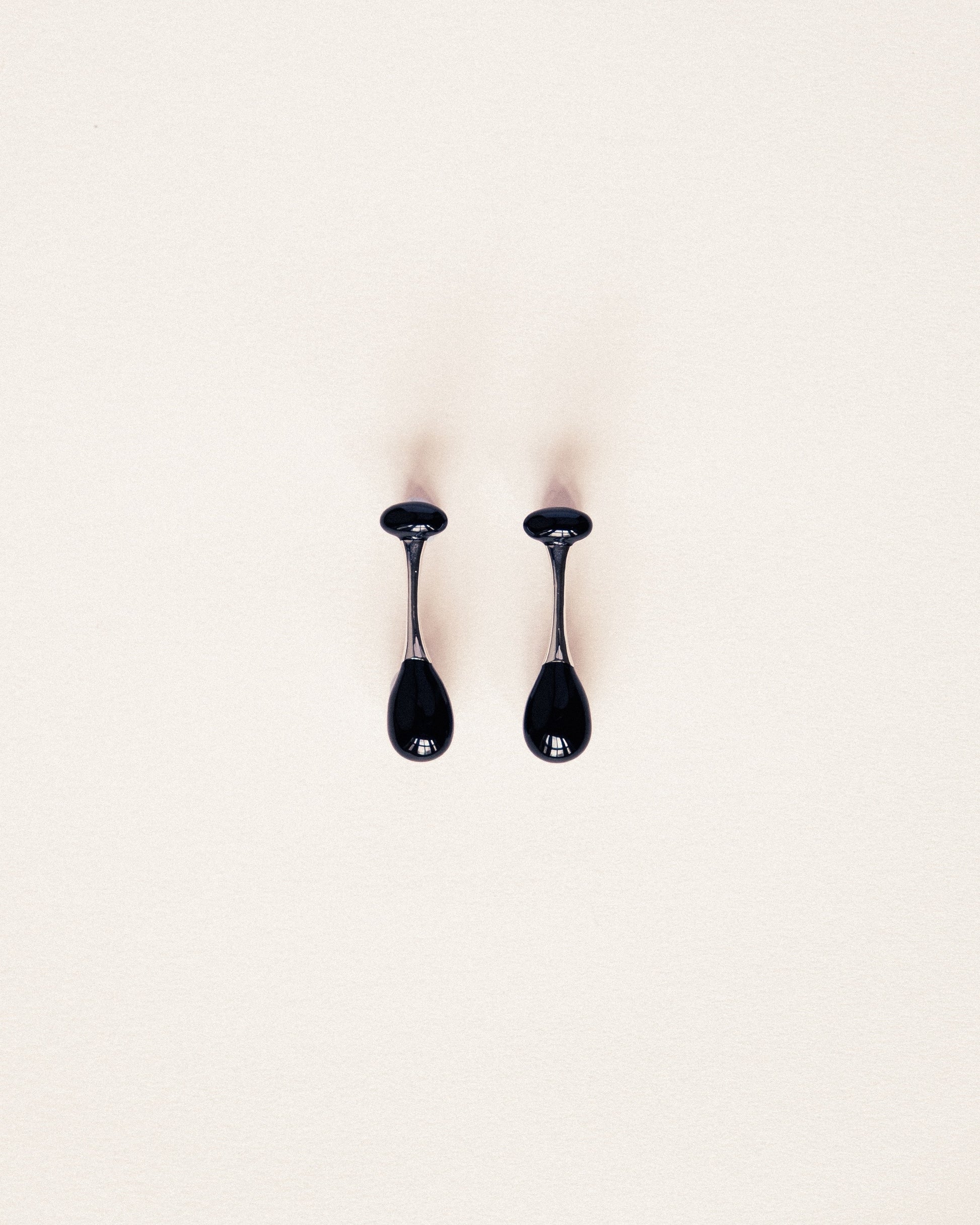 Part of the Noir Collection, Umbra is designed for the festive season and built around contrast; silver against deep black onyx. A structured hanging silhouette featuring two onyx stones, one at the top and one at the base, connected by a polished silver bar.